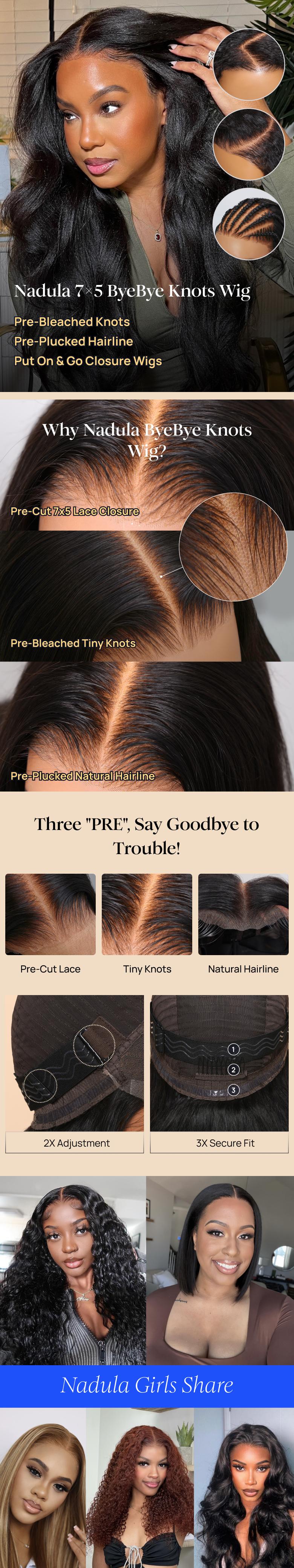 Nadula Bye Bye Knots Wig 2.0™ 7x5 and 13x4 Silky Straight Lace Front Wig Pre-Bleached Glueless Human Hair Wig